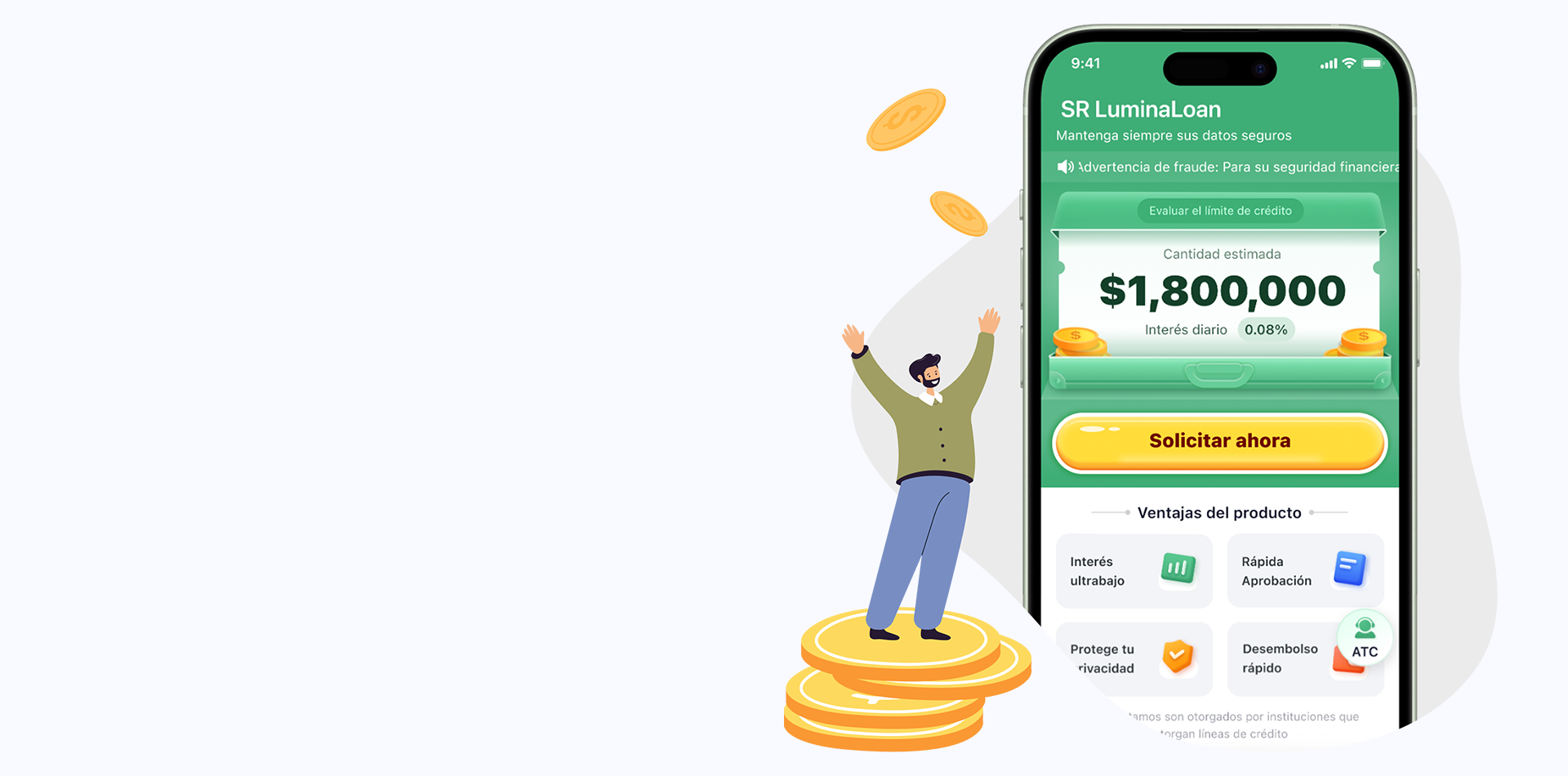Con nuestra aplicación, puedes solicitar un préstamo en minutos y recibir una respuesta casi inmediata. Nuestro sistema automatizado de evaluación de riesgos analiza rápidamente tu perfil crediticio y capacidad de pago, lo que agiliza el proceso de aprobación. Estamos comprometidos a ofrecerte una experiencia rápida, eficiente y sin complicaciones.